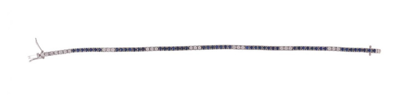Pulsera riviere en oro blanco de 18k, con zafiros de 0,70ct y diamantes de 0,38ct. Largo total: 19,5cm. Peso total de la pieza: 9,48g.
