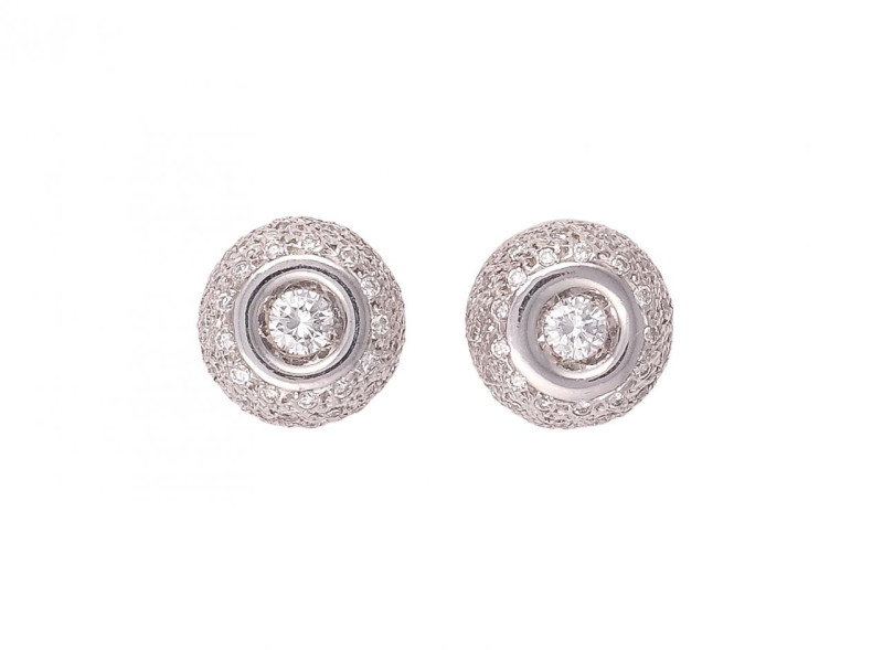 Pendientes con diamante central en talla brillante de 1,60ct y orla de brillantes pavé de 0,40ct. Cierre a presión. Peso total de las piezas: 6,51g.