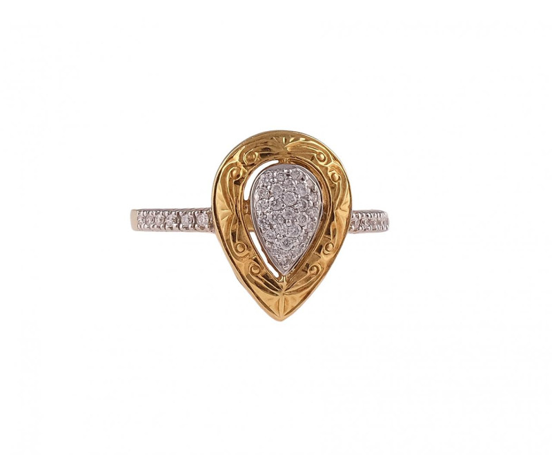 Sortija en oro amarillo bicolor de 18k en forma de lágrima con brillantes de 0,20ct . Peso total de la pieza: 4,76g.
