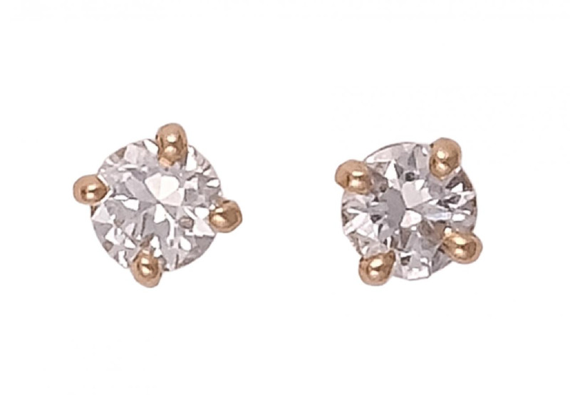 Pequeñas dormilonas engarzadas a 4 garras en oro amarillo de 18k con diamante de 0,40ct. Cierre a presión. Peso total de las piezas: 1,41g.