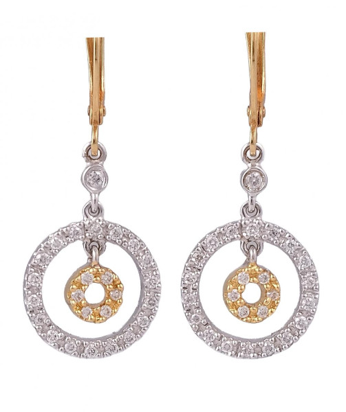 Pendientes largos bicolor con forma circular ornamentados con diamantes de 0,27ct. Cierre de gancho. Peso total de las piezas: 3,02g.