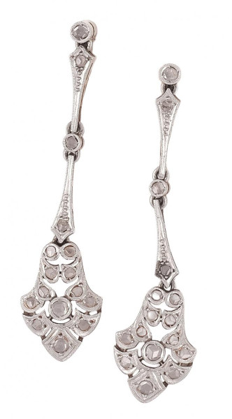 Pendientes de oro y frente de platino de estilo Art Déco con pequeño diamante central. Cierre catalán. Peso total de las piezas: 4,92g.