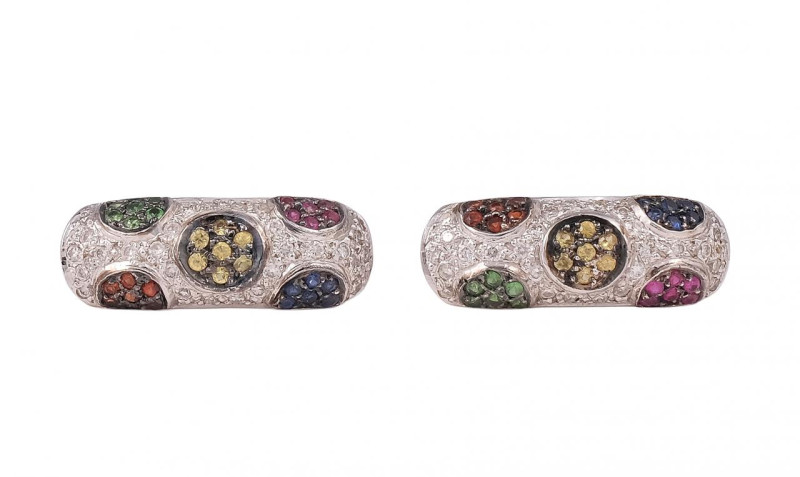 Pendientes en oro blanco con brillantes de colores de 0,70ct. Cierre catalán. Peso total de las piezas: 6,36g.