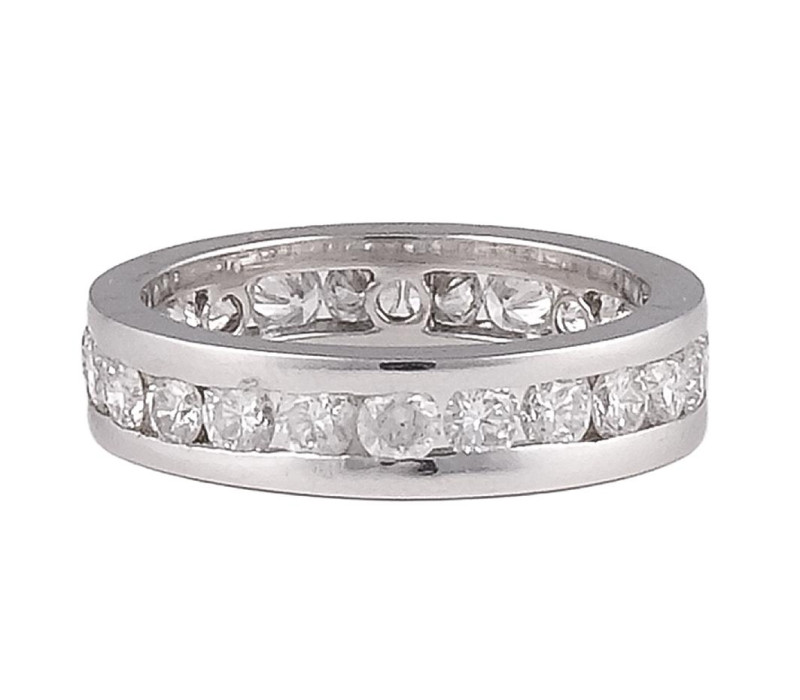Alianza en oro blanco con carril de brillantes de 1,18ct. Peso total de la pieza: 4,28g.