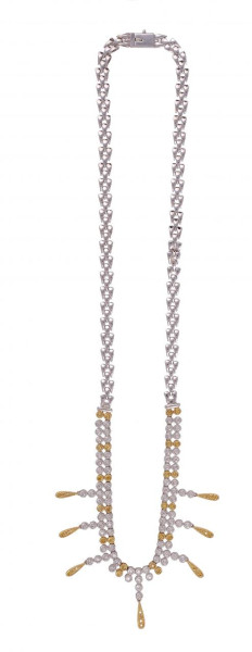 Gargantilla en estilo Art Déco de oro blanco con diamantes en talla brillante, compuesta por brillantes de color blanco de 1,35ct y amarillos de 0,60ct. Largo total: 42cm. Peso total de la pieza: 27,94g