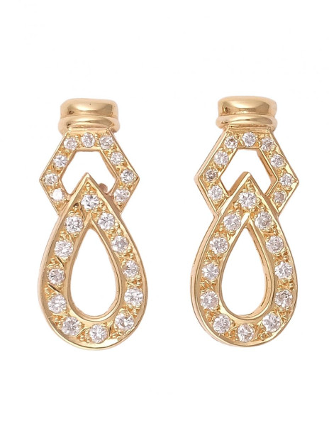 Pendientes en oro amarillo de 18k con diamantes de 1,40ct. Cierre a presión. Peso total de las piezas: 9,20g.