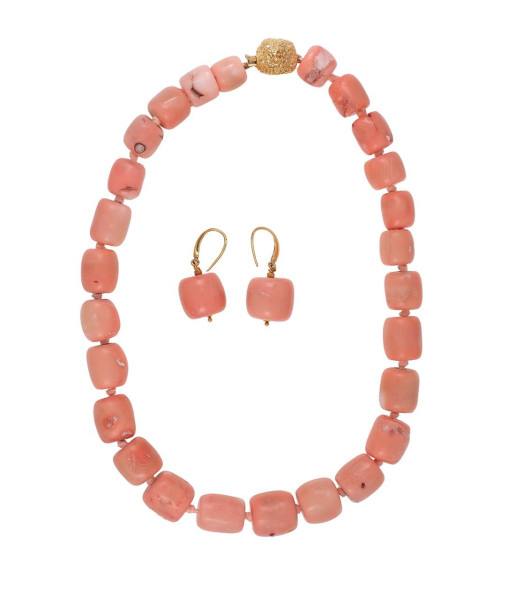 Conjunto de collar y pendientes de piel de ángel con cierre y montura en oro amarillo de 18k.