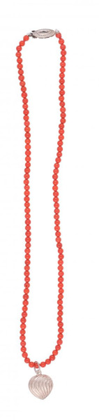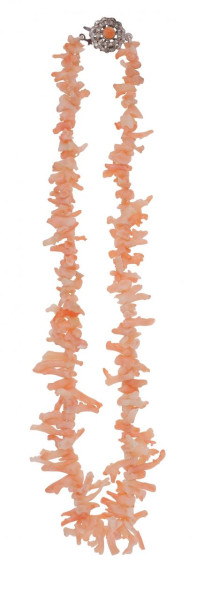 Gargantilla de ramitas de piel de ángel en disminución y cierre de plata italiana. Largo total de la pieza: 42cm.