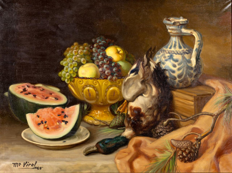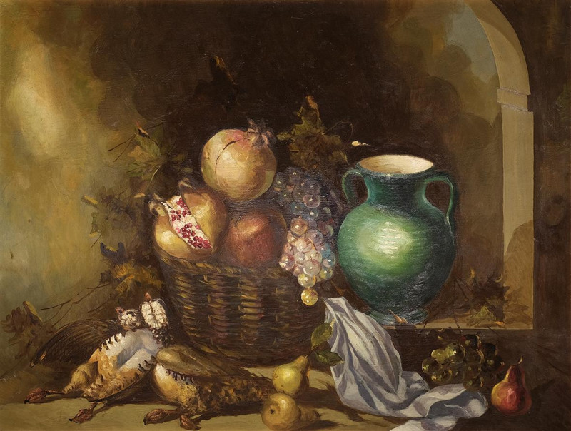 Naturaleza muerta con frutas y pato