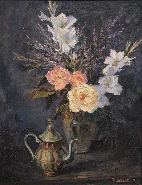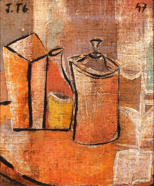 Bodegón con jarra y florero
