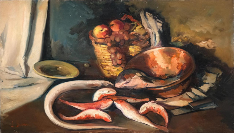 Bodegón de frutas y pescados