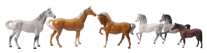 Lote compuesto por seis caballos en porcelana esmaltada de Beswick. Inglaterra, S. XX
