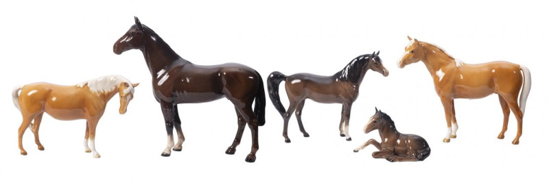 Lote compuesto por cinco caballos en porcelana esmaltada de Beswick. Inglaterra, S. XX