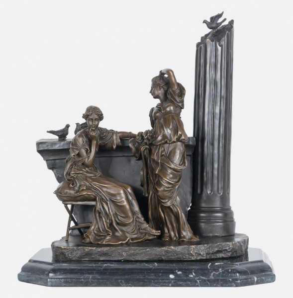 Escena neoclásica con dos figuras femeninas