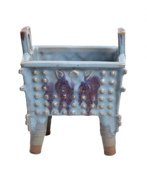 Caja en metal plateado con decoración repujada con medallones esmaltados con motivos florales con cuatro cabezas de angelitos rematando las esquinas, uno en el frontal y otro en la trasera de la tapa. España, Fns. XIX