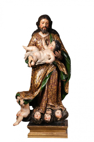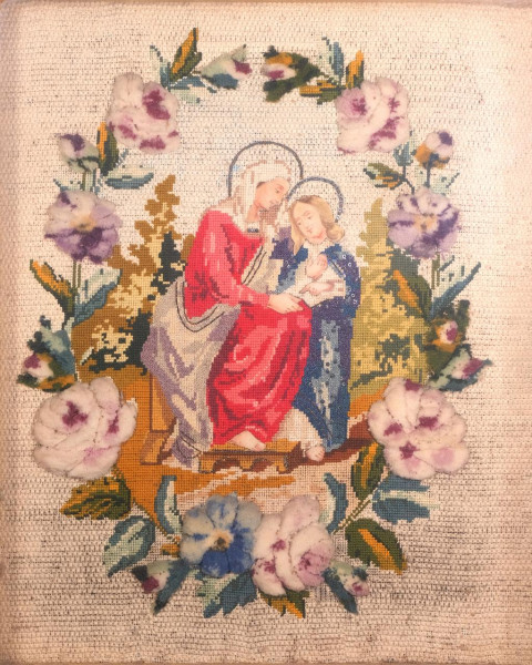 Bordado en "petit point" representando la Educación de la Virgen en una orla de flores y hojas. España, S. XIX