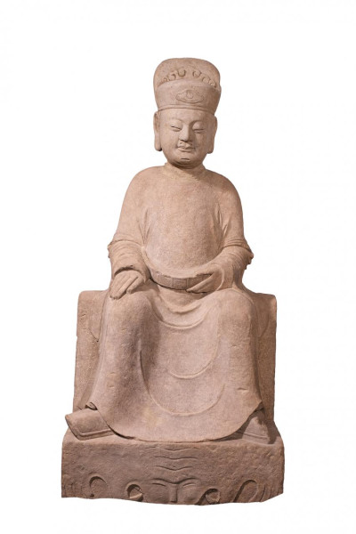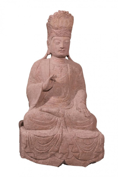 Figura sedente en piedra tallada, Bodhisattva Avalokiteshvara. China (Dinastía Qing), S. XVII