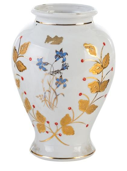 Quinqué convertido en lámpara con pie en porcelana esmaltada con decoración floral de rosas y tulipa en vidrio. Probablemente Alemania, S. XIX