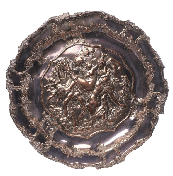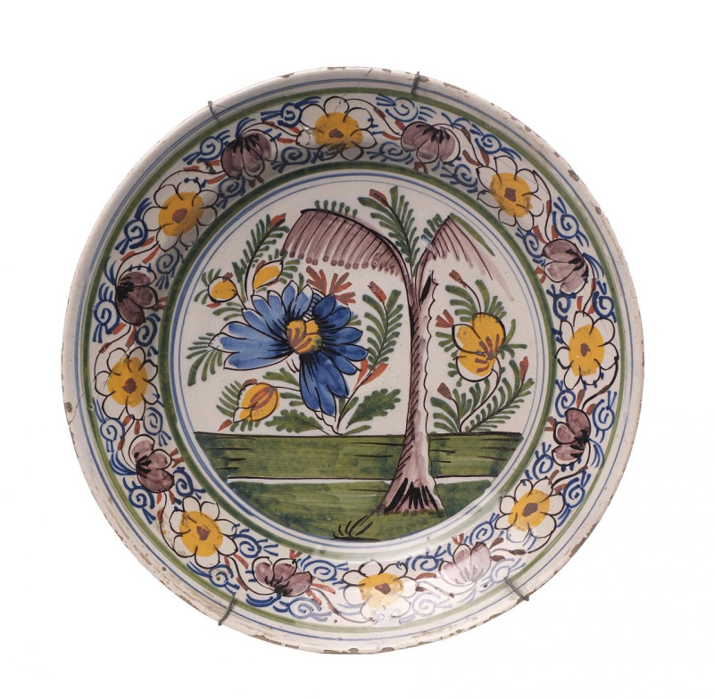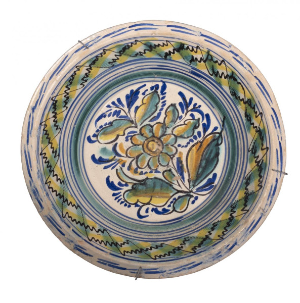 Plato en cerámica esmaltada con decoración floral y vegetal. Manises (Valencia), S. XIX