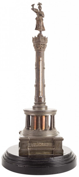 Termómetro de calamina en forma de columna rematada con figura mitológica. Fns. S. XIX.