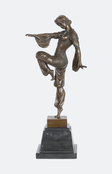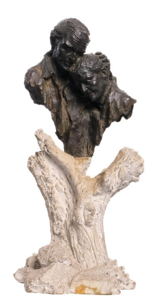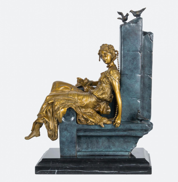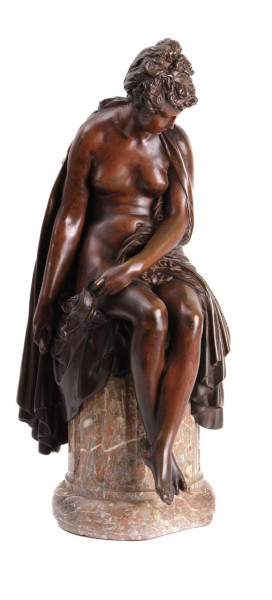 Figura de joven con cordero en terracota patinada imitando bronce sobre peana de mármol. S. XX