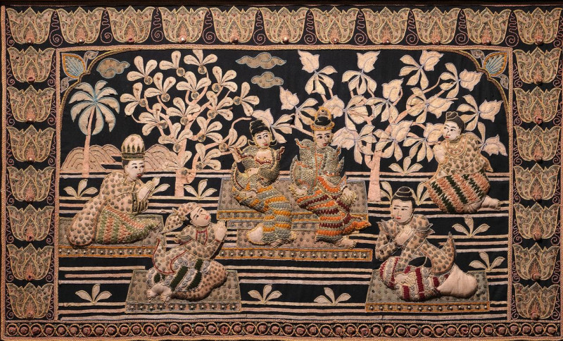 Alfombra en lana anudada a mano de la Real Fábrica de Tapices con diseño estilo Carlos IV. España, S. XX