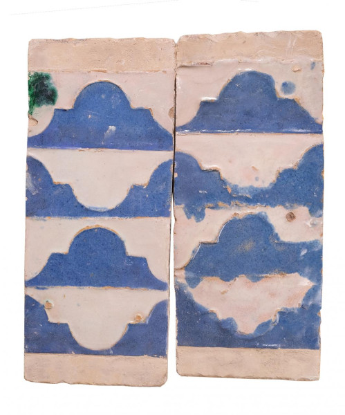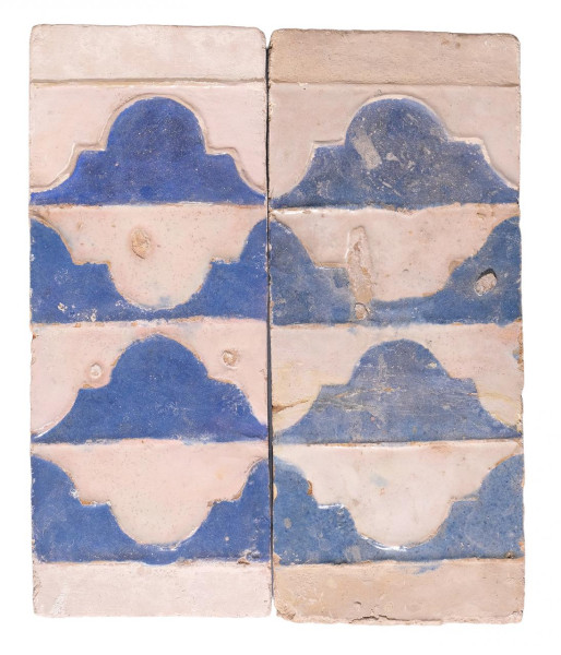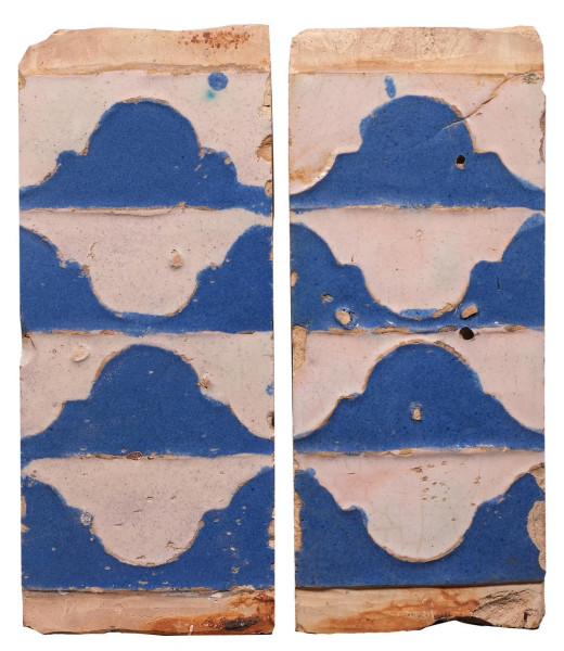 Pareja de azulejos por tabla en cerámica esmaltada de Triana en azul y blanco realizado mediante la técnica de arista. Sevilla, S. XVI