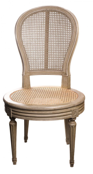 Silla de estilo Luis XVI en madera lacada en color hueso con respaldo de rejilla. Fns. S. XIX - Ppio. S. XX