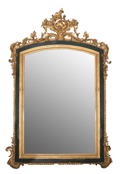 Espejo en madera tallada y dorada con decoración de hojas de acanto y flores. España, S. XIX