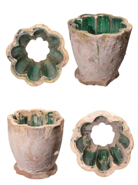 Pareja de claraboyas en cerámica con interior vidriado en verde. Córdoba, fines del Califato o Taifas, Fns. S. X - S. XI