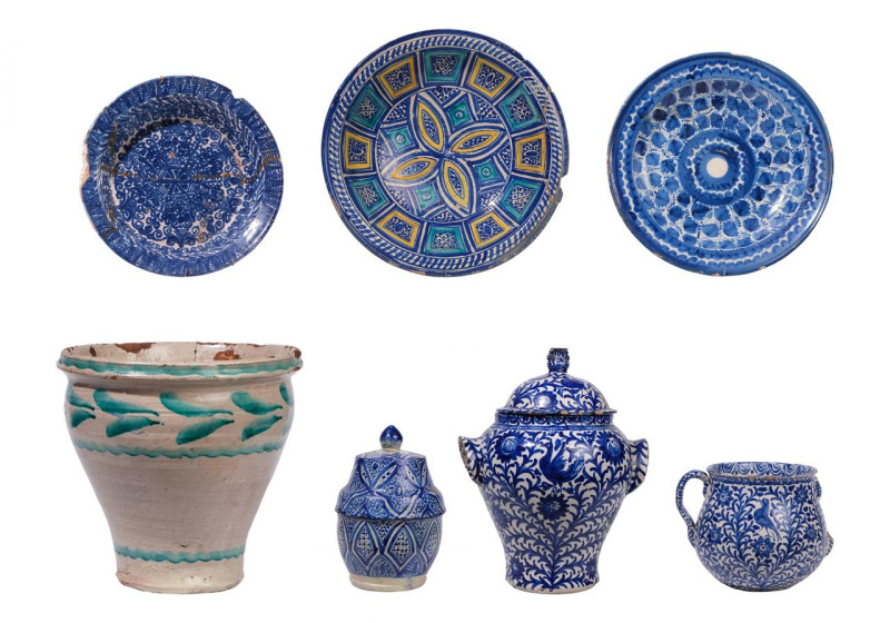 Lote compuesto por tres azulejos en cerámica esmaltada de Triana de la Serie Polícroma con decoraciones varias. Sevilla, S. XVIII