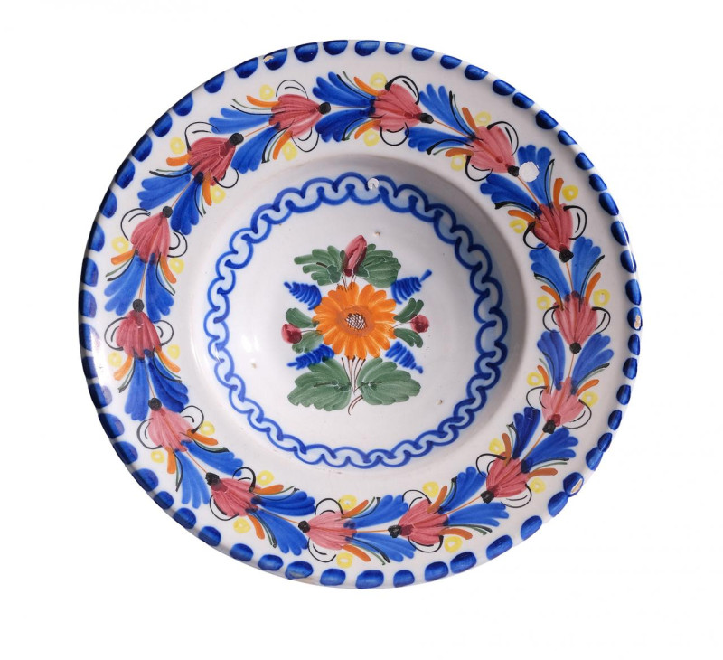 Azulejo en cerámica esmaltada de Triana de la Serie Polícroma con decoración central de personaje. Sevilla, S. XVIII