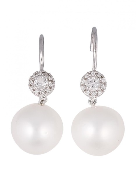 Pendientes en oro blanco con diamante de 0,12ct, perlas australianas de 11,5mm. Cierre de gancho. Peso total de las piezas: 5,82g