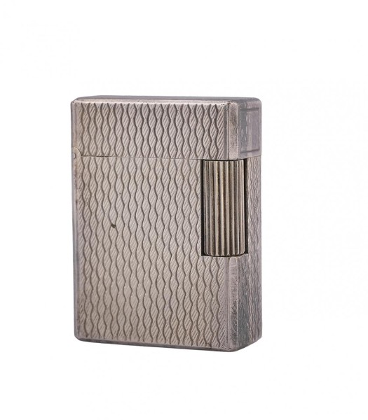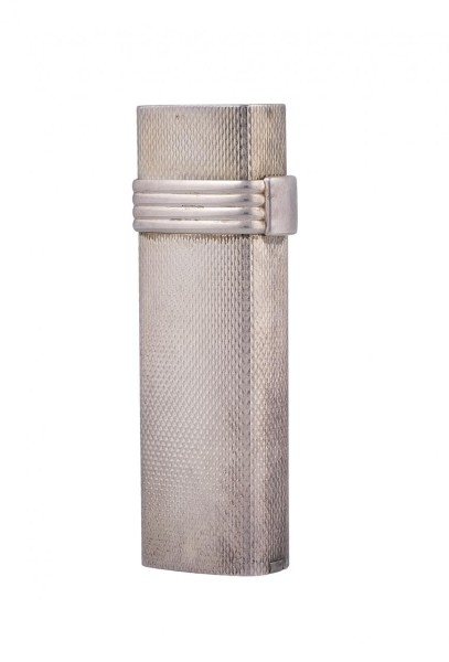 Encendedor S.T. Dupont chapado en plata con punta de diamante Big D. Fechado en 1973. Estuche original.