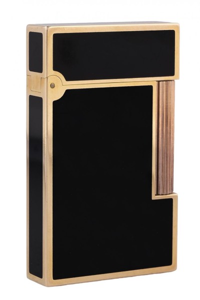 Encendedor S.T. Dupont Ligne 2, chapado en oro y lacado en negro. Conocido por su distintivo sonido de al abrirse, que refleja la precisión artesanal de la marca. Estuche y caja original.