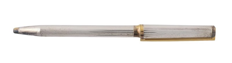 Portaminas S.T. Dupont Classique chapado en oro con un patrón guilloché vertical. De fábrica francesa (Faverges). Lleva grabado el nombre de la marca, el contraste, el número de serie y la referencia a su origen. Estuche original.
