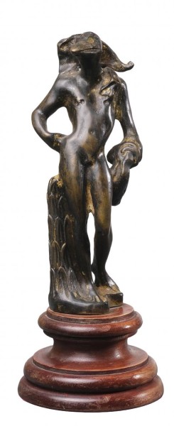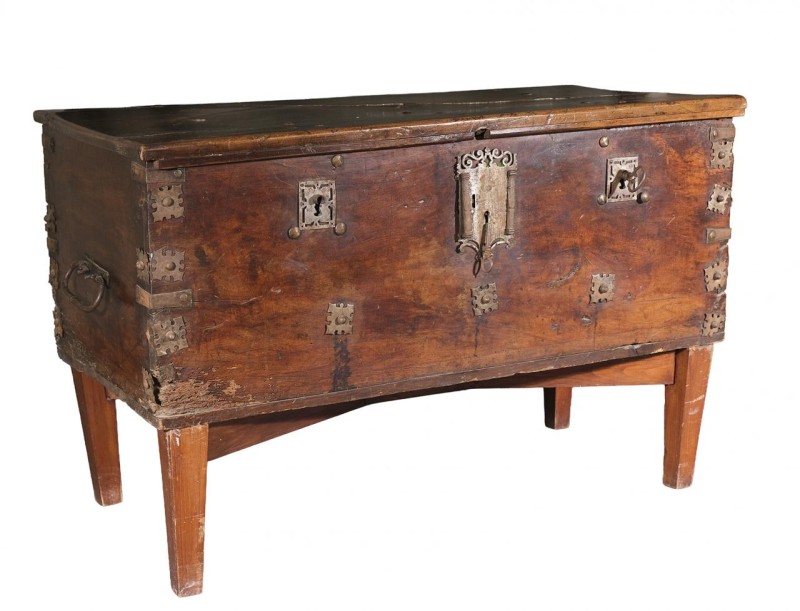 Tocador fernandino en madera tallada y parcialmente dorada con decoración de incrustaciones de zinc y de latón sobre pies en forma de garra. Cataluña, 1ª mitad del S. XIX