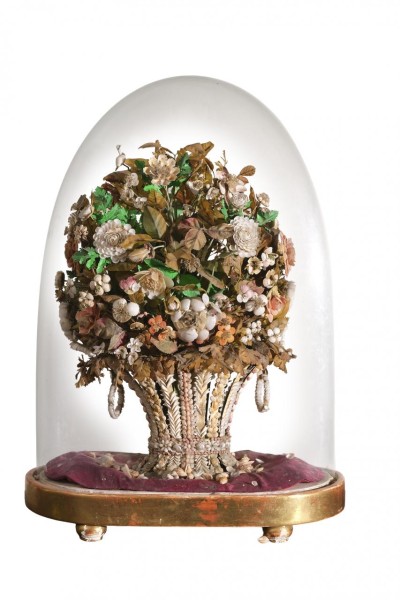 Fanal isabelino con trabajo en coquillage simulando una cesta con flores. España, segunda mitad S. XIX