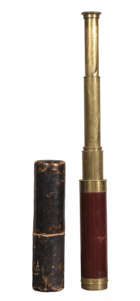 Catalejo extensible formado por cinco tubos en latón, el exterior revestido en madera. Inglaterra, S. XIX