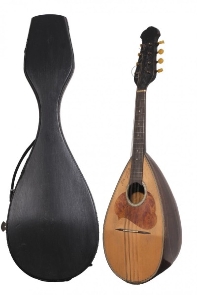 Mandolina Suzuki, posiblemente un modelo M-210 o similar, en madera de pícea en la parte superior, de arce en el fondo y de palisandro en el diapasón. Italia, h. 1970