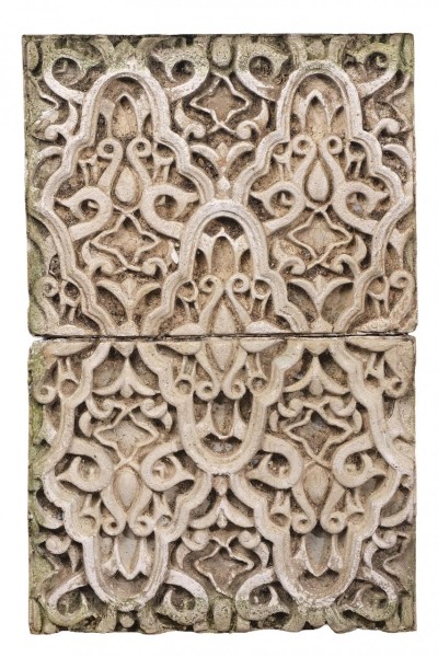 Pareja de remates en madera tallada y policromada en forma de ramilletes. España, S. XX
