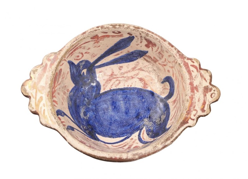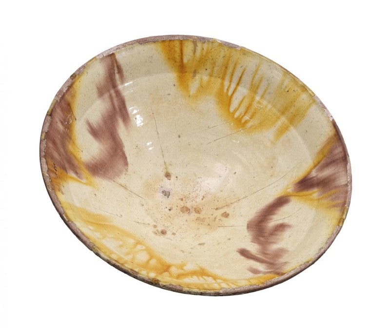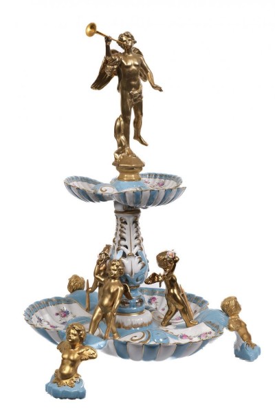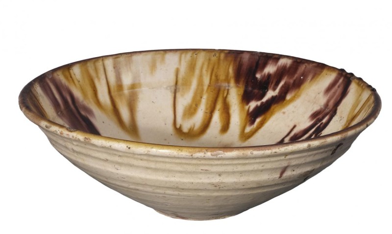 Macetero y pedestal a juego en cerámica esmaltada y vidriada con decoración floral en relieve. España, S. XX