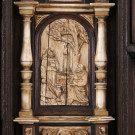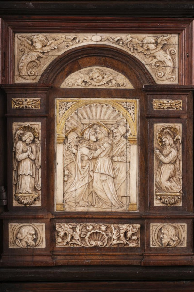 Bargueño en madera de nogal con aplicaciones en hueso. España, S. XVII.