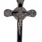 Crucifijo en metal plateado con querubines.