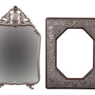 Lote compuesto por espejo de sobremesa y portarretratos, ambos con marco de plata. S. XX