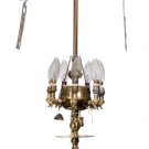 Velón o lámpara de aceite, en bronce, para siete mechas con pantallas laterales caladas. Fns. XIX
