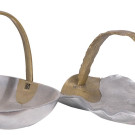 Dos centros con asa en aluminio y latón fundidos producidos por Art3. España, S. XX.