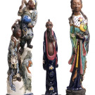 Lote formado por tres figuras orientales en cerámica vidriada. Primera mitad S. XX.