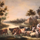 Paisaje fluvial con ganado y personajes