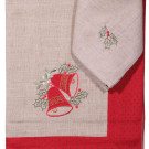 Mantelería bordada a máquina con motivos navideños y aplicaciones de color rojo. S. XXI